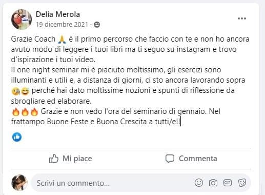 Seguivo il Coach D’Ambrosio sui social, guardavo i video e ogni mattina appena mi alzavo leggevo il “pensiero del giorno” che mi faceva riflettere e pensare. Arrivo poi ad un punto dove mi rendo conto di aver bisogno di aiuto. La mia vita sportiva stava crollando a picco, come riflesso della vita privata. Così un giorno mi decido e gli scrivo e prontamente lui risponde e mi tende la mano per aiutarmi. Io, come una bimba impaurita da quello che mi accade, afferro dapprima titubante un dito, poi lo stringo sempre più forte ogni volta che ci sentiamo in sessione.