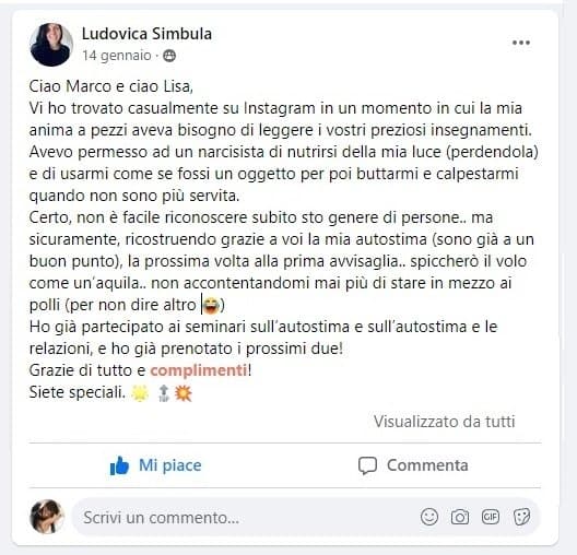 Ciao, sono Lisa Scaletta. Esperta di Relazioni e di dinamiche sentimentali. Sono una Love Coach e Insegnante “Heal Your Life” del metodo di Louise Hay.